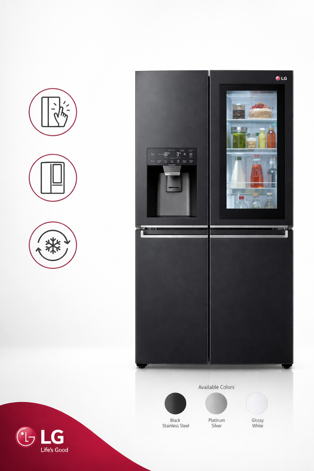Das Unternehmen LG hat in seinen Kühlschränken das „Door-in-Door“-Design eingeführt, das entwickelt wurde, um den Bedienkomfort zu erhöhen. Dieses System besteht aus zwei Türen: Die äußere Tür lässt sich separat öffnen und ermöglicht einen schnellen Zugriff auf häufig verwendete Lebensmittel. Dahinter befindet sich eine Glasscheibe, durch die man den Inhalt sehen kann, ohne den gesamten Kühlschrank zu öffnen. Beim Öffnen der äußeren Tür wird die Innenbeleuchtung aktiviert, sodass man alles auf einen Blick erkennen kann. In einigen Modellen sind in diesem Bereich zusätzliche Ablagen integriert, die den Stauraum für alltägliche Produkte erweitern. Durch die reduzierte Öffnung des Hauptfachs bleibt die kalte Luft besser im Inneren, was die Gesamteffizienz verbessert.